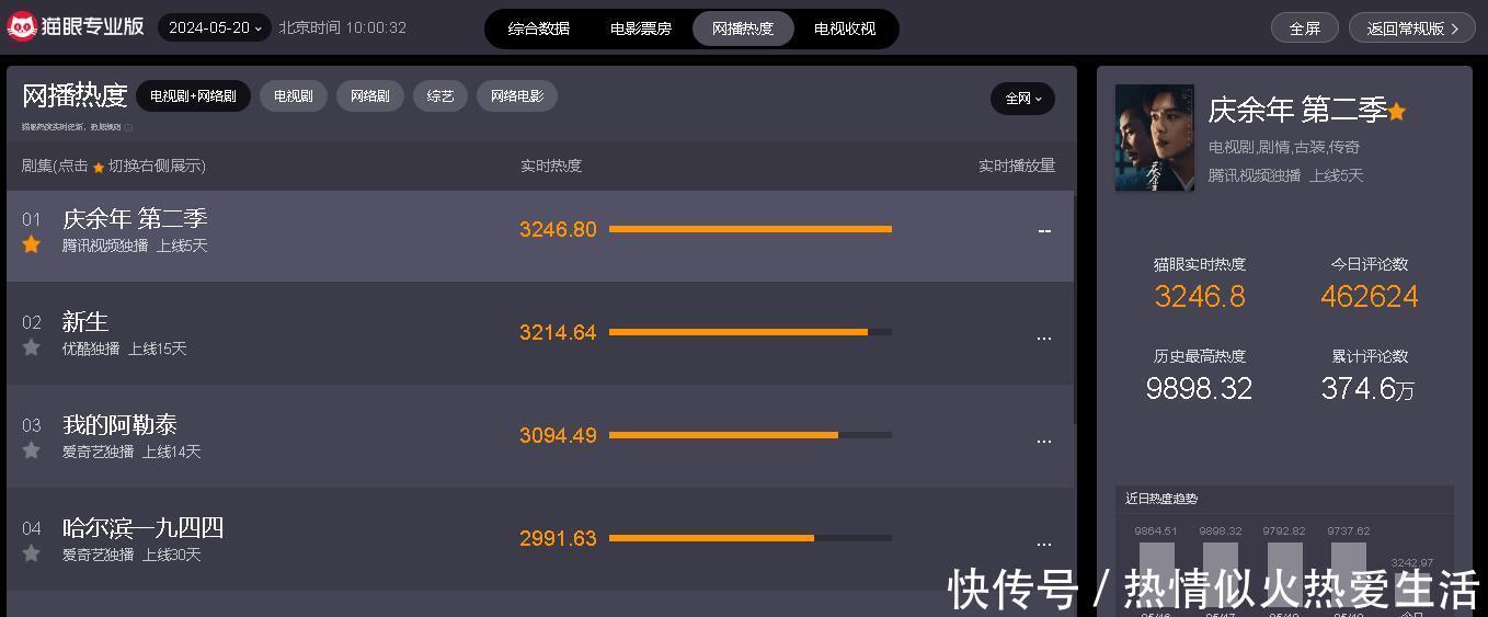 电视剧网播热度榜,你在追哪一部?码字不易,宽宥贯注点赞,留言琢磨。