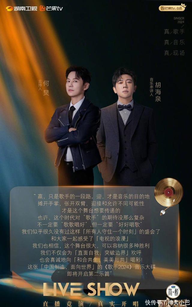 何炅搭档海泉沿途主合手《歌手2024》,仅是第二集就出现多个神级救场,包括了一开动第别称Chanté Moore,由于不思第一个上场,于是在沈梦辰叩门时高唱不在。